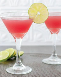Ingredients: 2 oz. vodka 1 1/2 oz. light cranberry juice 1/2 oz. fresh lime juice 1/4 oz. Low-Carb Simple Syrup (recipe on mixers page) 2 drop of pure orange extract Lime wheel, for garnish