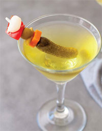 2. Strain the contents of the cocktail shaker into a chilled martini glass. Garnish with a dill pickle spear and any other fun keto-friendly pickled vegetables you have on hand.