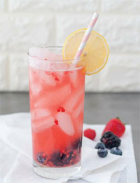 Ingredients: 2 oz. vodka 1 1/2 oz. lemon juice 1/3 oz. Low-Carb Simple Syrup (recipe on mixers page) 2 oz. water 2 blackberries 2 blueberries 2 raspberries 1 strawberry, hulled & quartered Lemon wheel, for garnish