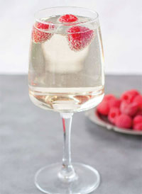 Ingredients: 6 oz. ice-cold dry white wine 3 oz. well-chilled club soda 3 raspberries, for garnish (optional)
