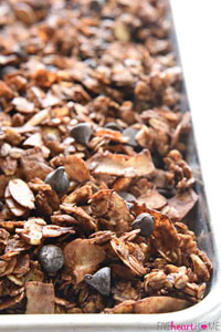 Ingredients: 2 tablespoons butter 1 cup unsweetened coconut flakes 1 cup raw, unsalted cashews 1 cup raw, unsalted almonds 1 cup 90% dark chocolate shavings